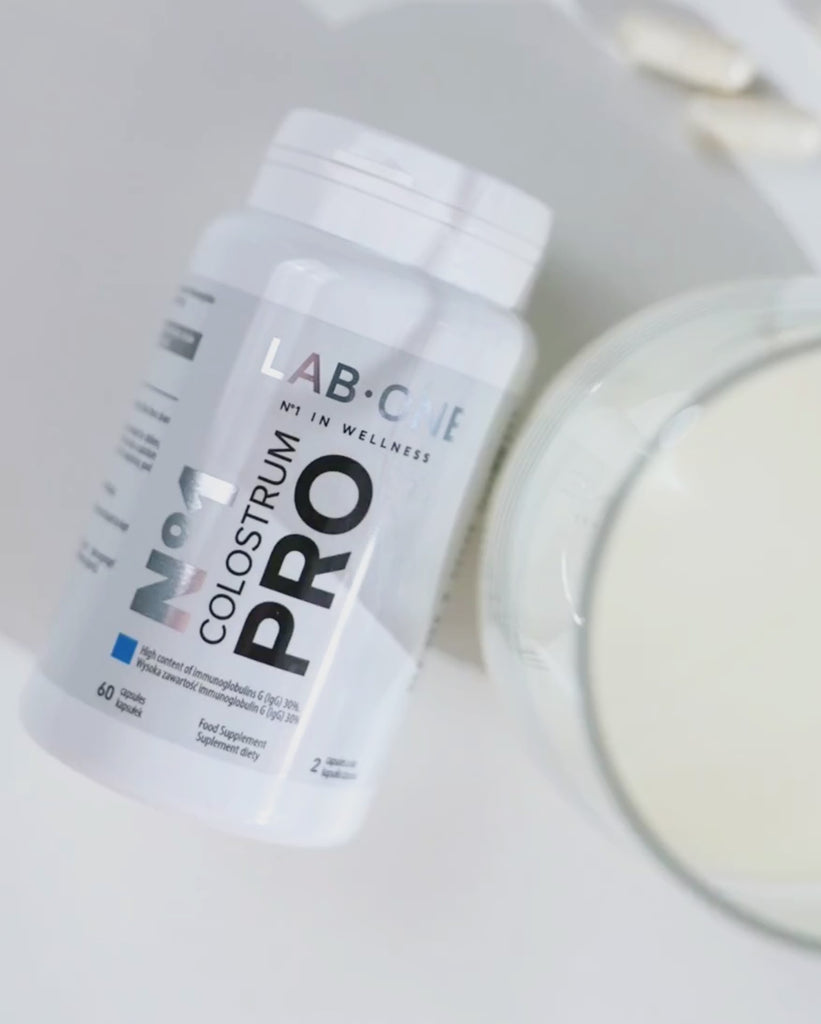 N°1 Colostrum Pro to suplement diety, którego składnikiem aktywnym jest colostrum siara bydlęca w proszku. Jest ona standaryzowana na minimum 30% immunoglobuliny IgG.